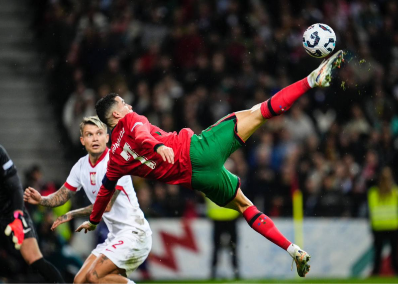 تماشاییترین صحنه بازی اما در دقایق پایانی رقم خورد. جایی که ویتینیا توپ را روی دروازه ارسال کرد و رونالدو از فاصله پنج متری تا دروازه، با یک ضربه قیچی برگردان دیدنی توپ را خلاف مسیر دروازهبان لهستان به گل پنجم تیمش تبدیل کرد.